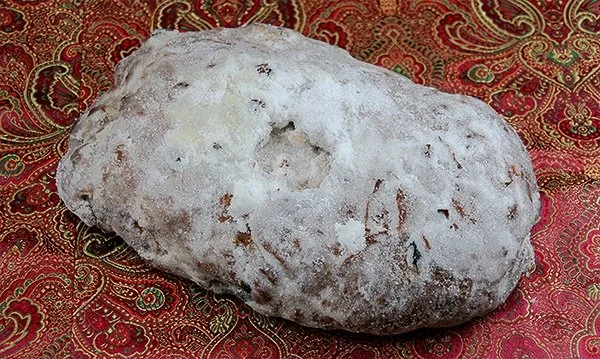 on your holiday table, you may at first say, "Whoa, Uncle Reginald, what the heck is that?" When he tells you it's stollen, you may say, "I refuse to eat ill-gotten bread." Uncle Reginald then says, "Not 'stolen' — 'stollen'!" and slices into it, revealing the spicy, fruity bread within. He gives you a sample, after giving his Great Dane a sample, and you say, "That spicy, fruity bread can indeed go on my holiday table, Uncle Reginald."