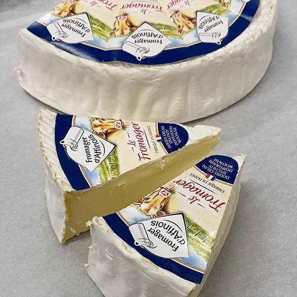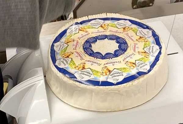1. Le Fromager, a French double cream cheese made by Fromager d'Affinois, starts out its adult life as a wheel just looking to make its way in the world. This is how we receive Le Fromager.
