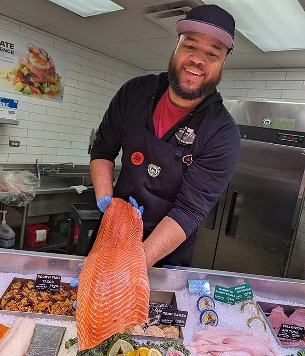 For this second Fish Friday of Lent, Rory, at our Colfax store in the photo above, would love for you to partake of Loch Duart Scottish salmon, and for good reason. (We don't carry Loch Ness Scottish monster because that's just creepy.) This spectacular salmon is sustainably raised in pristine waters off the coast of northwest Scotland. The farms were designed around the needs of the fish: LOTS of room for swimming around, and feed that reflects what they eat in the wild. These are the closest you'll find to immaculate, wild-caught salmon.