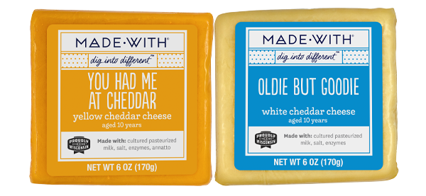 These cheddars have been aged one year longer than your nine-year-old cat. Your cat may have grown mellower with age, but these cheddars have acquired sharpness, complexity and richness. And at $4.99 per pound you can get both and then compare and contrast their flavors at halftime.